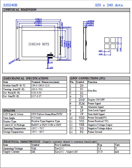图形点阵液晶模块JXD320240-2 FSTN 白光无控制器
